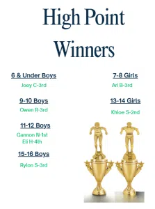 - Owen Richards: 100 back-2nd, 100 free-2nd, 50 free-3rd, 200 free-3rd, 50 breaststroke-3rd, 50 back-4th & 500 free-4th.